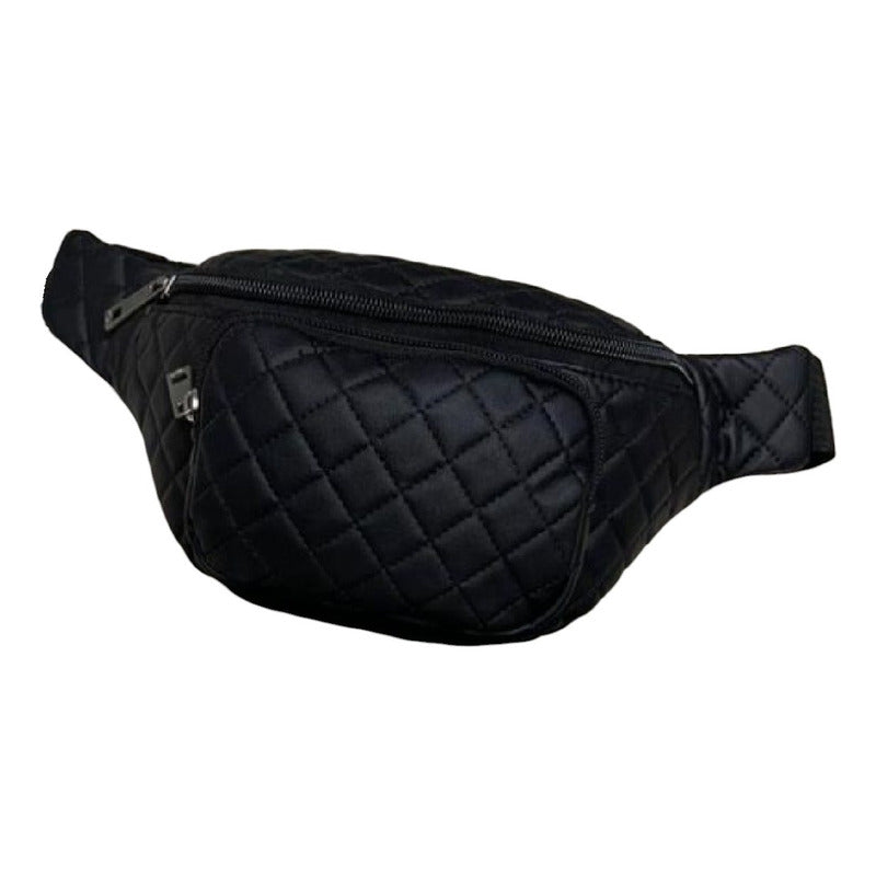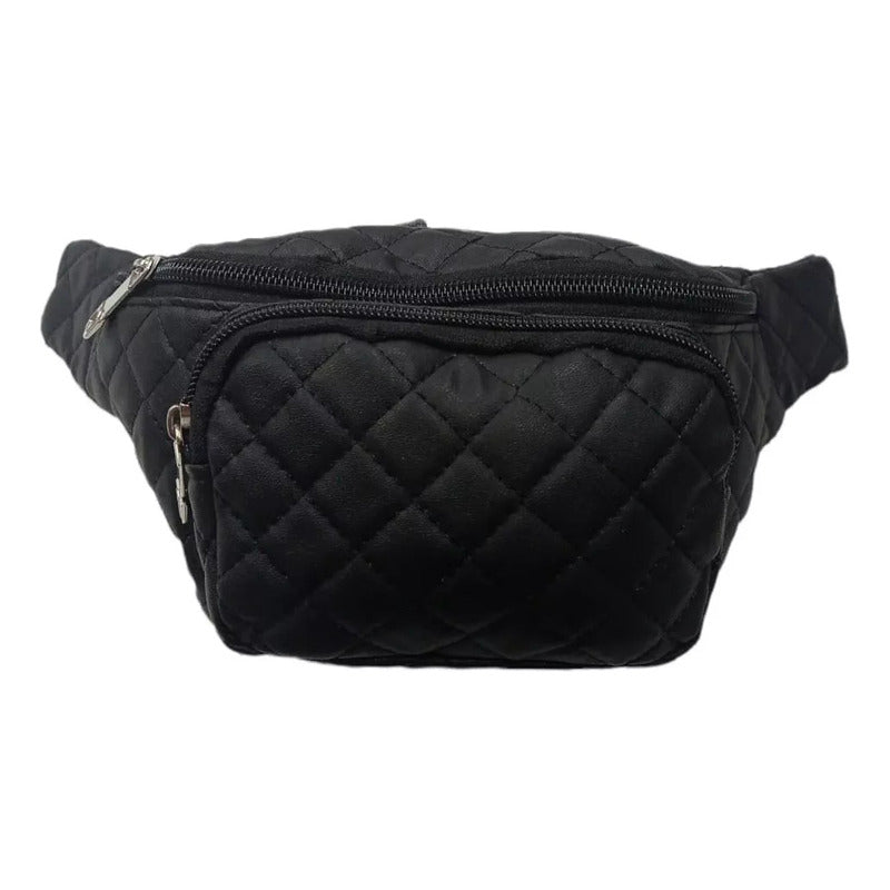 Riñonera Sport Con Cierres Correa Ajustable Porta Documentos Negro Capitoneada