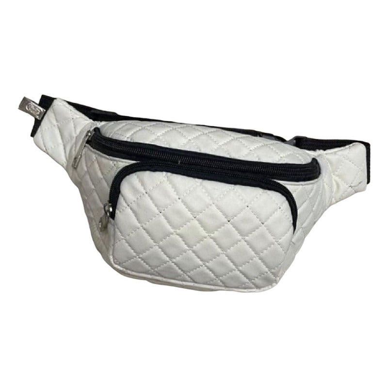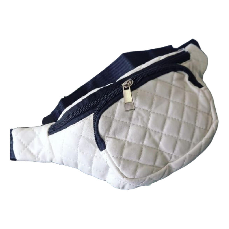 Riñonera Capitoneada Con Correa Ajustable Porta Documentos Blanco