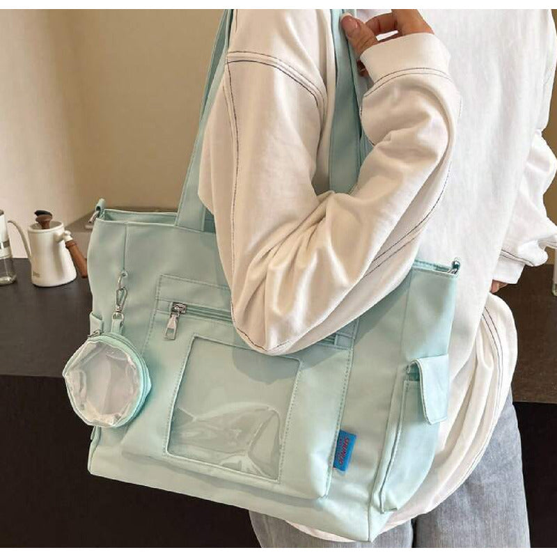 Bolso Plegable De Tela Impermeable Cartera Dama Con Bolsillo Celeste Lisa