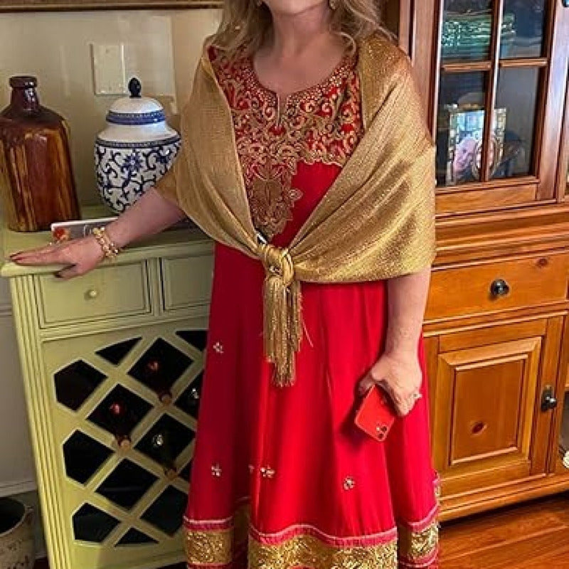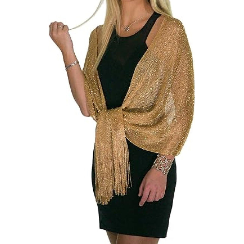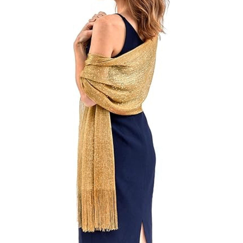 Chalinas De Fiesta Chal Fino Con Brillo En Varios Colores - Dorado Oscuro - Rayas