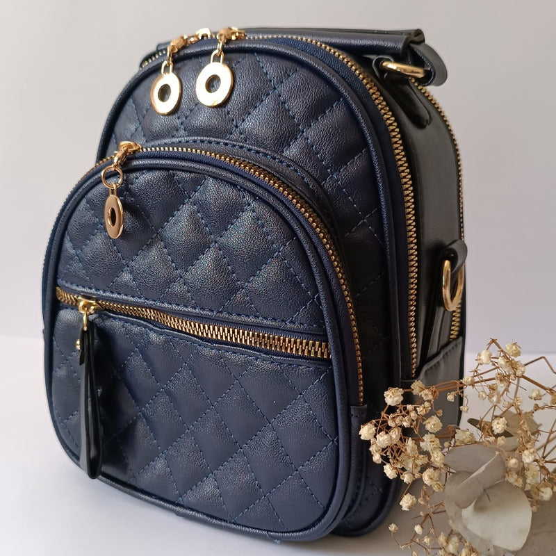 Mochila Cartera De Dama 2 En 1 Cuero Sintético Bolsos Mujer Azul Cuero Sintético
