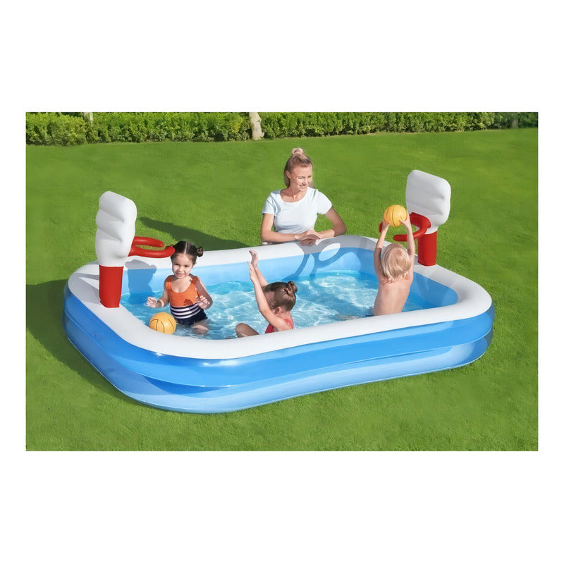 Pileta Inflable Rectangular Bestway Infantil 54122 Básquetbol De 2.54m X 1.68m X 1.02m 636l Azul Y Blanca Caja