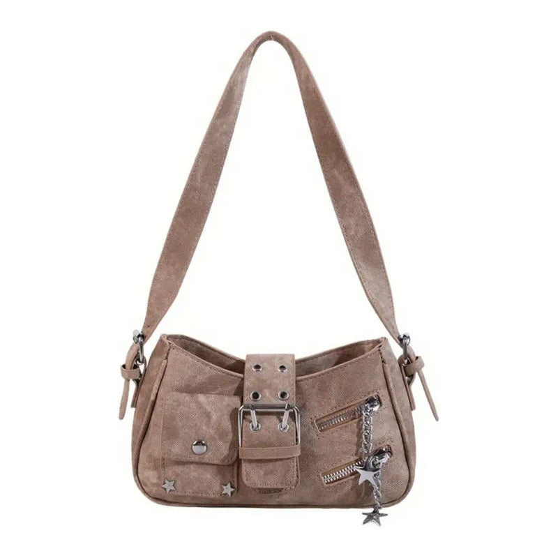 Cartera Bandolera De Tela Para Mujer Correa De Hombro Caqui Lisa