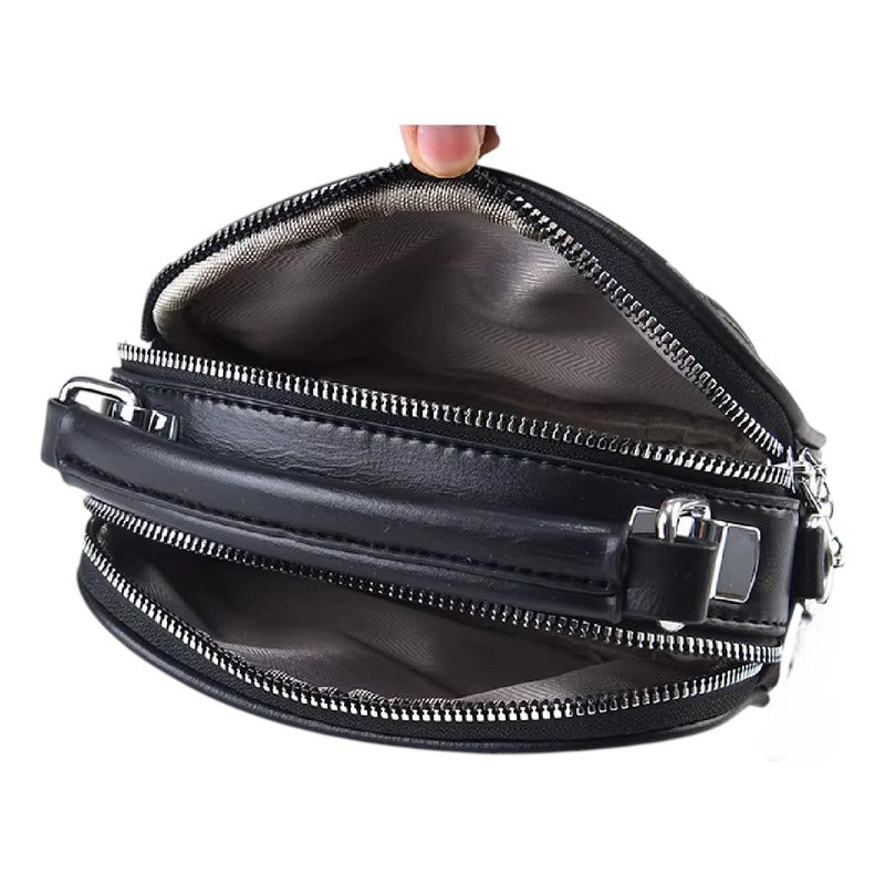 Cartera Bandolera rígida capitoneada. 3 Compartimientos con cierres. 1 Bolsillo con cierre trasero. 1 Bolsillo interno sin cierre. 2 correas ajustables. Medidas: largo 18 cm, alto 12 cm, profundidad 8 cm. ------------------------------------------------------------------------ ***ENVÍOS A TODO EL PAÍS*** -Envíos FLEX en el día para todo Montevideo y áreas Metropolitanas. -Envíos al interior del País por Mercado Envíos se realizan a través de La Agencia de Mercado Libre. -Envíos al interior del País con compra a acordar se realizan a través de DAC o UES. ***Retiros en zona La Comercial***