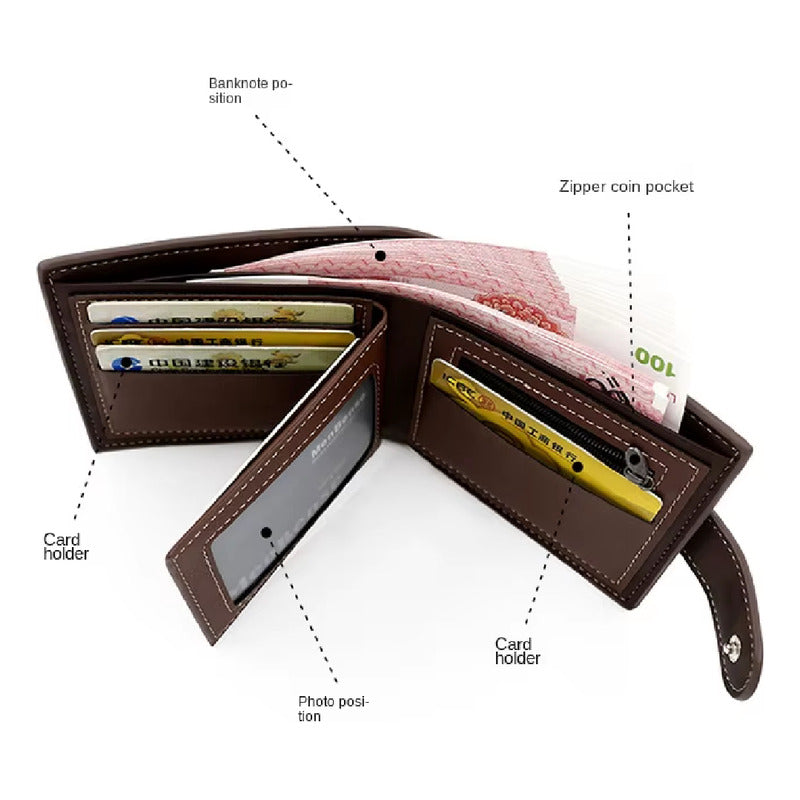 Billetera Para Hombre Con Monedero Sector Tarjeta De Cuerina Negro 3