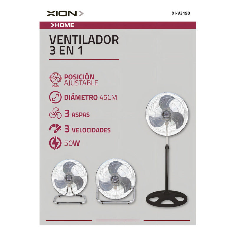 Ventiladores Xion 3 En 1 Pie/turbo/pared X2 Unidades Metal 1.143 M Negro Transparente Plástico