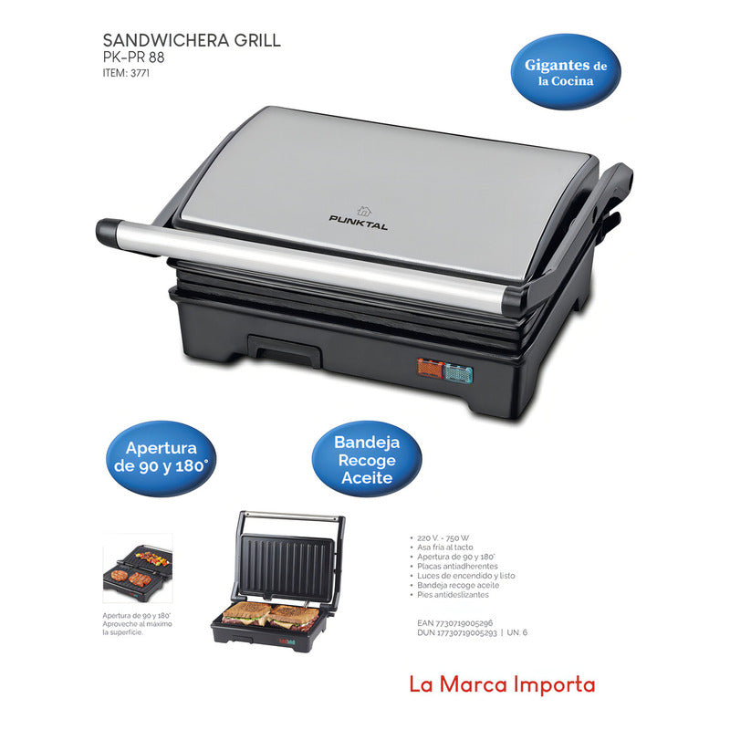 Sandwichera Grill Punktal Antiadherente 750w 1 Año Color Gris