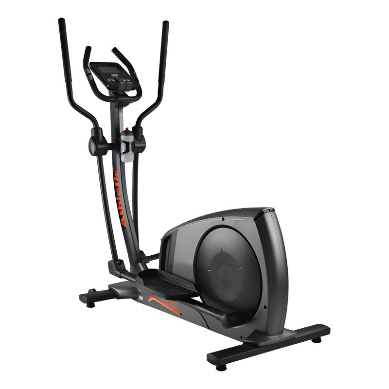 Elíptica profesional Athletic 1700ep La elíptica 1700EP permite realizar entrenamientos cardiovasculares completos, fortaleciendo diversos grupos musculares para obtener resultados excepcionales. Equipada con un avanzado sistema de control magnético eléctrico, asegura un funcionamiento suave y silencioso, proporcionando una experiencia de ejercicio óptima. Ficha técnica: - Volante de 9 kg - Transmisión de correa - Sistema magnético permanente - 32 niveles de resistencia - Funciones scan, velocidad, distancia, tiempo, calorías, watt, RPM, pulso, porcentaje de grasa corporal, recuperación, calendario, temperatura y reloj - Porta tableta y manillar ajustable - 8 programas de entrenamiento preestablecidos para una variedad de rutinas de ejercicio. - Ruedas para su fácil transporte - Capacidad máxima de usuario de 150 kg - Dimensiones compactas de 166x70x158 cm - Peso neto/bruto: 58 kg/ 71.5 Kg - Dimensiones caja 138x74x38 cm