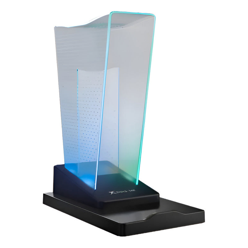 El soporte para auriculares es resistente, seguro y duradero. Retroiluminacion 7 colores RGB 4 Puertos USB Base estable antideslizante Soporte para teléfono móvil, puedes utilizar el soporte para auriculares como soporte para teléfono móvil, que es muy estable. Material: plástico Interfaz USB: USB 2.0, 4 puertos Voltaje y corriente de entrada: 5 V 500 mA Voltaje y corriente de salida: 5 V 500 mA Velocidad de transferencia: 480 Mbps Tamaño del soporte: 260 x 130 x 80 mm Longitud del cable: 1,5 m